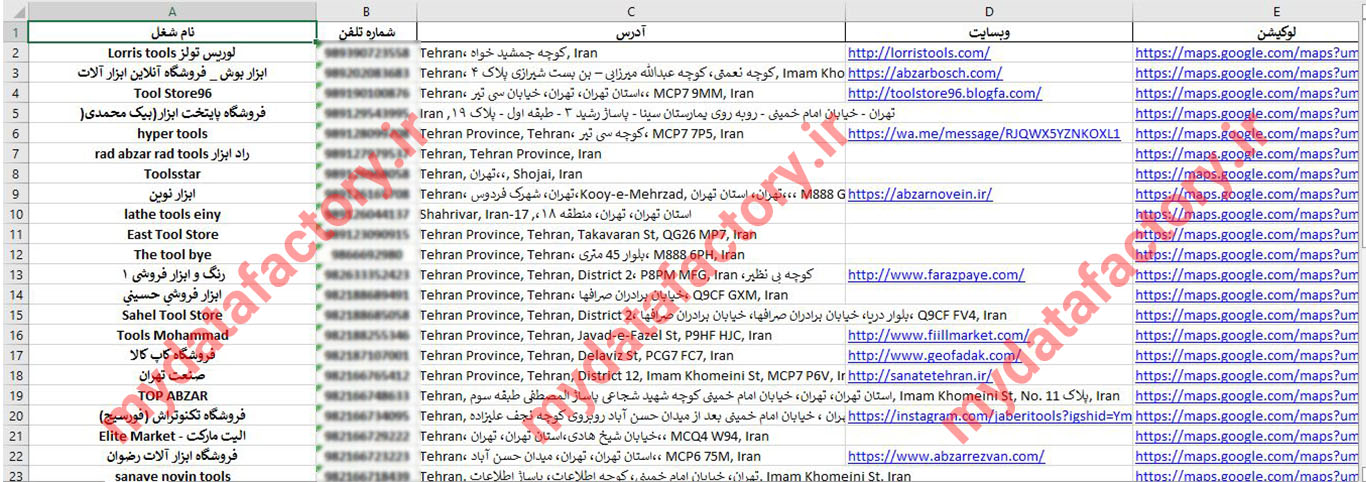 فیلد های بانک اطلاعاتی: نام کسب و کار شماره موبایل و تلفن ثابت وبسایت و شبکه های اجتماعی آدرس دقیق کسب و کار